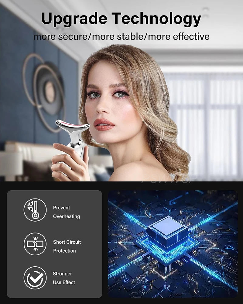 Ergonomic Design: The device's shape comfortably fits the contours of your face and neck, ensuring effective treatment.